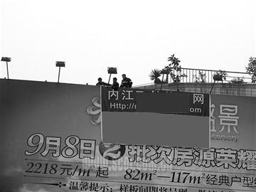 昨日上午9時(shí)許,內(nèi)江西林大橋橋頭,川糧賓館一程姓工作人員突然發(fā)現(xiàn),一青年男子正站在附近一高樓外墻巨幅廣告牌上,利用手中的擴(kuò)音喇叭大聲喊:工作失意,一死了之。由于西林大橋宛如紐帶連接內(nèi)江東興區(qū)、市中區(qū)兩區(qū),為內(nèi)江城區(qū)交通要沖和繁華地段,再加上男子手握擴(kuò)音器喊話,一時(shí)間眾多居民都被吸引了過(guò)來(lái)。程女士撥打了110、119,幾分鐘后,西林派出所民警和內(nèi)江市消防支隊(duì)的戰(zhàn)士都趕到了現(xiàn)場(chǎng)。