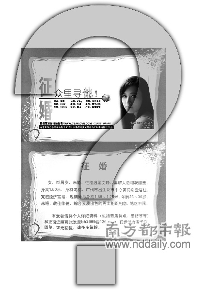 廣州一神秘富家女花50萬(wàn)元登廣告征婚引爭(zhēng)議(圖)