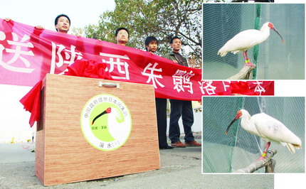 11月18日清晨,來(lái)自我省洋縣的兩只朱鹮從西安咸陽(yáng)國(guó)際機(jī)場(chǎng)出發(fā),在省出入境檢驗(yàn)檢疫局監(jiān)管下,被包機(jī)護(hù)送至上海后轉(zhuǎn)機(jī)飛赴日本。這是洋縣的朱鹮第三次告別生養(yǎng)自己的故鄉(xiāng),落戶日本國(guó)土。