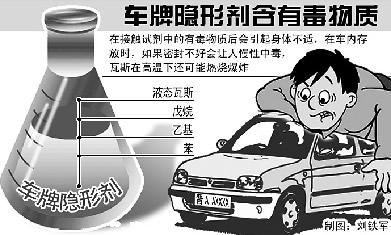 在百度搜索引擎上搜索“車牌隱形劑”,與之相關(guān)的信息達(dá)8300余條。產(chǎn)品介紹大致一樣:采用的是反光溶劑配方,針對中國內(nèi)地汽車車牌藍(lán)底白字的特性,進(jìn)行了特別配方。這樣的“車牌隱形劑”售價在200—400元。經(jīng)銷者介紹,購買者多為出租車司機(jī)或運(yùn)輸行業(yè)的司機(jī)。
