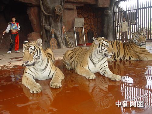 中新網(wǎng)順德11月22日電(孫建駒 謝俊忠)陜西省鎮(zhèn)坪縣農(nóng)民周正龍拍攝華南虎一事經(jīng)媒體廣泛傳播后,一時(shí)坊間沸沸揚(yáng)揚(yáng),并引發(fā)“打虎派”和“挺虎派”的熱烈爭(zhēng)論,互聯(lián)網(wǎng)上更是“打虎”聲一片。在真假華南虎熱爭(zhēng)之際,廣東順德長(zhǎng)鹿休閑度假農(nóng)莊馬戲團(tuán)將3只東北虎的照片制成大小一樣的噴畫,準(zhǔn)備邀請(qǐng)網(wǎng)友與周正龍前來(lái)順德拍虎,然后比較真虎照與噴畫虎照的區(qū)別所在。