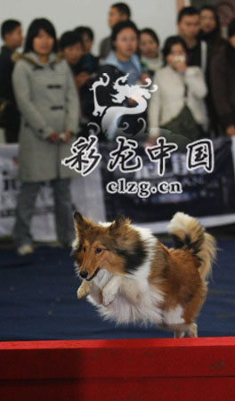 在比賽場不遠處,還舉辦了狗狗“敏捷秀”,看看哪只狗狗在爬坡、穿洞、跳高等各方面的技能訓(xùn)練最好。由12只狗組成的參賽隊伍,一會兒上坡,一會兒跳高,引來眾人的喝彩。特別是狗按照指定路線送報紙、跳舞等才藝表演,讓人大開眼界。