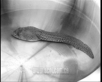 大千世界,無(wú)奇不有。記者在廣安市鄰水縣見到了一條 “怪魚”:全身沒(méi)有魚鱗和魚須,也沒(méi)有胸鰭和腹鰭,像蝌蚪又非蝌蚪,似鰻魚而非鰻魚,其叫聲像野雞(右圖)。廣安水產(chǎn)專家也不知其為何物。