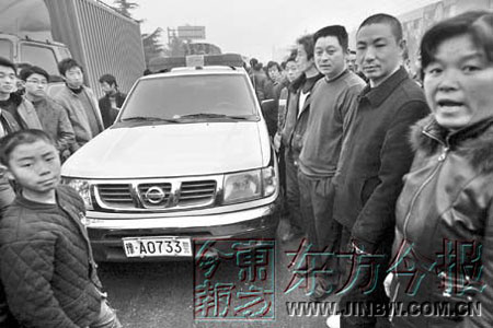 昨天下午4點(diǎn)半左右,記者趕到107國(guó)道新鄭市龍湖鎮(zhèn)路段龍湖賓館門前看到,上百名群眾情緒激動(dòng),圍著一輛車牌號(hào)為豫A0733警的警車。