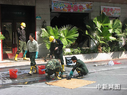 記者發(fā)現(xiàn),消防人員正在餐廳里面勘查。名典西餐廳隔壁的桂鴻茶餐廳經(jīng)營者方先生是第一個發(fā)現(xiàn)火情并報警的人。據(jù)他介紹,他于十二日傍晚五時零八分發(fā)現(xiàn)名典西餐廳二樓冒煙起火,二分鐘后他撥打報警電話,十幾分鐘后消防人員趕到現(xiàn)場,消防人員用了十五分鐘將大火撲滅。據(jù)方先生介紹,火災(zāi)發(fā)生時有二男一女用凳子砸破玻璃窗從二樓跳下,一男子摔在路邊小車上,腿部與腰部受傷,目前已經(jīng)脫離危險,另有一男子還在樟木頭人民醫(yī)院重癥監(jiān)護室,未脫離危險。