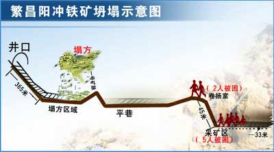 繁昌縣陽沖鐵礦12月11日19時許發(fā)生坍塌事故后,7名礦工目前仍被困在礦井中。國家安監(jiān)總局局長李毅中、省委書記王金山都批示全力搶救,國家安監(jiān)總局派出的技術(shù)支持人員也已經(jīng)趕到現(xiàn)場指導(dǎo),武警蕪湖支隊40名官兵也于昨日中午趕到現(xiàn)場支援,搶險人員用生命探測儀器檢測,發(fā)現(xiàn)礦井內(nèi)有生命跡象。但救援指揮部指出,這一技術(shù)目前還不成熟,被困礦工生死仍是未知數(shù)。