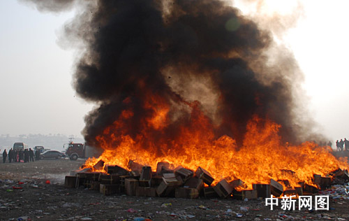 上午10時(shí)30分,隨著吉林市市政府副秘書長(zhǎng)陳波一聲令下,吉林市煙草專賣局的工作人員將火把拋向了正待銷毀的煙堆,熊熊大火頓時(shí)燃起,銷毀假煙制品活動(dòng)正式拉開序幕。直至11時(shí)20分,大火才逐漸熄滅,整個(gè)銷煙活動(dòng)持續(xù)了近一個(gè)小時(shí)。