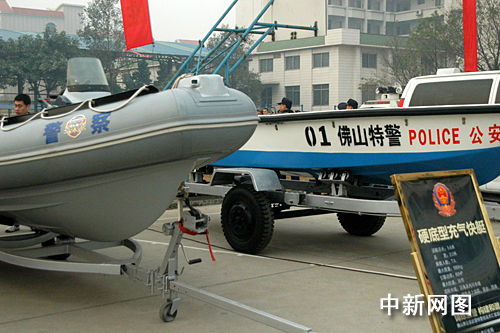 記者在演練現(xiàn)場看到,醒目的標語飄蕩在廣東省佛山市人民警察學校上空,裝備展示區(qū)內(nèi),具最新科技水平的裝甲車、突擊車、沖鋒舟、機器人一應俱全,各種警備器械令人目不暇接,“科技強警”在佛山成效顯著。