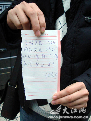 昨日上午8時30分許,南昌市民劉先生在乘坐了一趟公交車后,衣服內(nèi)的錢包竟變成紙條。紙條上竟然寫著“不好意思,沒錢回家過年,特到你處借用一下,有機(jī)會再還你!”紙條的落款為一借錢者。