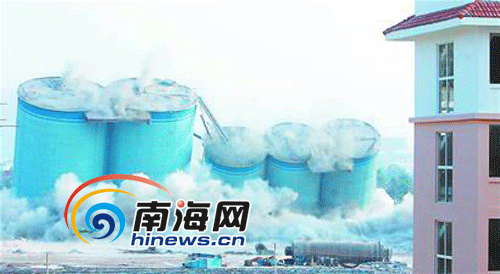 對天涯水泥廠實(shí)施爆破是三亞落實(shí)節(jié)能減排、保護(hù)環(huán)境動(dòng)真格的表現(xiàn)。天涯水泥廠區(qū)是從8月底開始拆除的,經(jīng)過3個(gè)半月的爆破拆除,余下最后7座巨大的鋼筋混凝土結(jié)構(gòu)的儲(chǔ)料倉庫,直徑在11-17米之間。