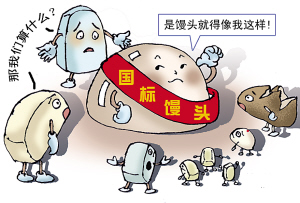 什么叫饅頭?別以為這問題很弱智——最近,可是網(wǎng)上一大熱議話題。饅頭之所以在網(wǎng)上“躥紅”,始于最近有多家媒體稱,國家有關(guān)部門出臺了“饅頭國標(biāo)”,其中規(guī)定“饅頭必須是圓的”。一份有6437人參加的網(wǎng)上調(diào)查顯示,82.63%的人對此持異意。