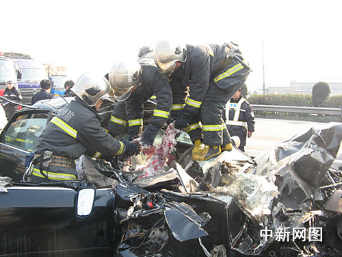 槽罐車司機(jī)立即報警,交警、消防、醫(yī)療、環(huán)保等部門的救援人員先后趕到現(xiàn)場展開營救?刹恍业氖牵嚿纤拿藛T中,除了坐在正駕駛位后邊的男乘客受傷外,其余1男2女已經(jīng)死亡。最后,消防戰(zhàn)士用兩頭牽引的辦法將鉆進(jìn)槽罐車尾部的奧迪轎車?yán),并將被工業(yè)廢水腐蝕的死者拉出了變形地駕駛室。