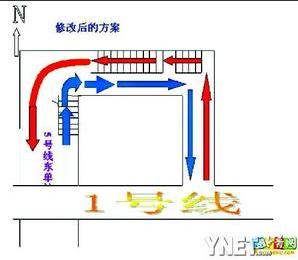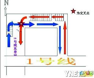 為了讓大家能對這一問題有直觀的認識,“cjg9527s”制作了兩張圖發(fā)在網(wǎng)上。第一張圖是目前東單地鐵站換乘通道的設計圖,另外一張則是他修改之后的東單地鐵站換乘通道的通行圖。第一張圖上可以清晰地看到,由于從1號線通往5號線的兩部電梯和從5號線通往1號線的扶梯設置在靠墻的同一側(cè),所以兩股換乘人流勢必會在5號線進站口附近交叉。