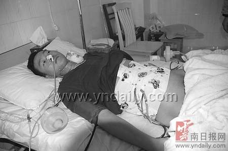據(jù)主治醫(yī)生張新有介紹,病人剛送醫(yī)院時(shí),駱文龍已經(jīng)有了休克癥狀。手術(shù)過(guò)程中,臨滄市第一人民醫(yī)院也派出專家組往鎮(zhèn)康趕,由于病人失血過(guò)多,一度出現(xiàn)血漿短缺,等到市里專家組到了以后,馬上對(duì)病人補(bǔ)充了血漿,手術(shù)直到第二天上午才做完。張醫(yī)生說(shuō),手術(shù)后發(fā)現(xiàn),子彈從駱文龍右肋下穿入,從右腰側(cè)出來(lái),他的肝右翼、膽囊底、胃竇部前后壁、十二指腸水平部都出現(xiàn)破裂。手術(shù)以后主要是防止他的十二指腸修補(bǔ)處發(fā)炎漏液癥狀。(劉自學(xué) 攝影報(bào)道)