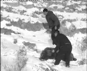 據(jù)舒蘭市公安局巡警大隊的民警閆貴星介紹,13時40分,接到報警后,全副武裝的民警立即趕到現(xiàn)場,加入到抓捕隊伍中。民警率先用麻醉針筒向野豬注射四五針,但野豬仍然沒有倒下。為了便于抓住它,抓捕人員把野豬趕到了野外的一個山溝里,此時的野豬看起來有些累了,趴在地上不動了。但是,當(dāng)民警上前欲抓捕時,野豬馬上就站了起來,發(fā)出兇猛的嚎叫,民警試了幾次都無法靠近它。