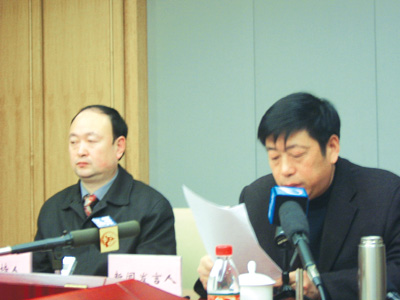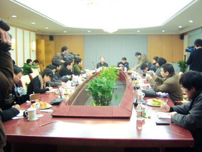 記者11日從新聞界同行朋友處得知了這個(gè)新聞發(fā)布會,不請自至。與發(fā)布會的草草結(jié)束類似,記者差點(diǎn)沒有進(jìn)到會場。樓下負(fù)責(zé)簽到的人員說:我們沒有請你。幸遇媒體同行及省委宣傳部一位干部的“說情”,終于進(jìn)到會場。記者還被人囑咐:要按通稿報(bào)道,因?yàn)楹枚囝I(lǐng)導(dǎo)都批了字。