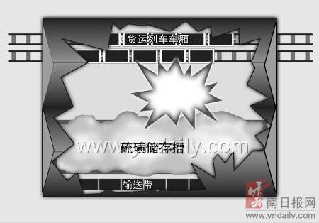凌晨6時(shí)30分,記者趕到爆炸現(xiàn)場(chǎng),雖然火勢(shì)已被基本撲滅,但距現(xiàn)場(chǎng)100米外,刺鼻的硝煙味依然明顯,警戒線內(nèi)消防特勤官兵繼續(xù)用水槍為設(shè)備降溫,水槍大面積覆蓋裸露的硫磺顆粒堆積池,只有戴呼吸器的消防員才能進(jìn)入現(xiàn)場(chǎng)。記者看到,硫磺倉(cāng)庫(kù)是兩個(gè)長(zhǎng)100米、寬20米左右的聯(lián)排庫(kù)房,一個(gè)主要堆積高濃度硫磺顆粒,有傳送帶等設(shè)備;一個(gè)主要用作裝卸區(qū),并排停放了兩列共10節(jié)列車貨廂,滿載袋裝硫磺,在列車貨廂內(nèi)的硫磺包裝袋上,寫(xiě)有濃度99.9%的字樣。