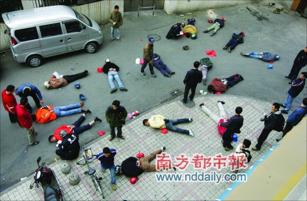 9時(shí)40分,裝扮成乘客的便衣警察從出口緩緩走出,“搭客仔”們跟往常一樣,圍住他們就要作案。“不許動(dòng),警察!”便衣警察大喝一聲,順勢(shì)制服一個(gè)作案嫌疑人。見(jiàn)到同伙被抓,其他“搭客仔”馬上四處逃竄,車(chē)站出口頓時(shí)一片混亂,站內(nèi)乘客都往外跑,外面路口的人卻擁過(guò)來(lái)看熱鬧。其中一名男子,飛奔中被便衣?lián)涞乖诘,手腳朝天還想反抗,被其他趕上來(lái)的便衣合力制服。幾分鐘后,14名涉嫌盜搶的“搭客仔”都趴在了地上。