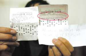 “因?yàn)椴幌胱尣势薄稓狻,我拿了彩票和自己手?xiě)的號(hào)碼便條,急急裝到了口袋內(nèi)就走了。第二天,我看到報(bào)紙公布的中獎(jiǎng)號(hào)碼,拿出手寫(xiě)便條上的號(hào)碼一看,其中一個(gè)號(hào)碼就是500萬(wàn)的中獎(jiǎng)號(hào)碼,可拿出彩票卻發(fā)現(xiàn)竟然沒(méi)有號(hào)碼。我要為我這500萬(wàn)元討個(gè)說(shuō)法!弊蛉丈衔,張先生拿著他手寫(xiě)的選碼和空白彩票,來(lái)到本報(bào)投訴。