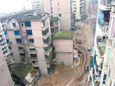 而忠州鎮(zhèn)州屏路二巷6號房主楊某與妻子唐某,卻并不認(rèn)同這種補(bǔ)償方式,開出了百萬巨額賠償。因?yàn)榻袃r(jià)沒有得到滿足,兩口子拒絕搬遷。2007年,所有拆遷工作結(jié)束,周圍的鄰居都搬走了,道路也挖到了他們家門口,但兩口子仍然不肯離開。