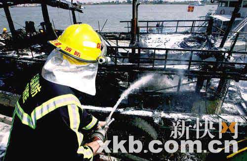 據了解,起火漁船為粵番禺01022號,596匹馬力,載重142噸,船主郭旺娣是石樓鎮(zhèn)群星村人,于前日出;氐缴徎ㄉ綕O港碼頭!斑@艘船上裝有7噸柴油!币幌绬T介紹,他們趕到時該船正順著流水由北往南漂!八敃r是邊燒邊漂,船上一片火海,連桅桿那么高的地方都燒起來了!
