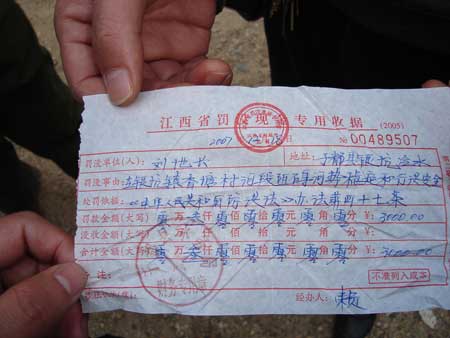 劉地長(zhǎng)告訴記者,去年,于都縣水務(wù)局第一次來查采砂點(diǎn)時(shí)沒有罰款。去年12月18日,水務(wù)局開了一張3000元的罰單,說是采砂點(diǎn)阻礙河勢(shì)穩(wěn)定和堤壩安全。