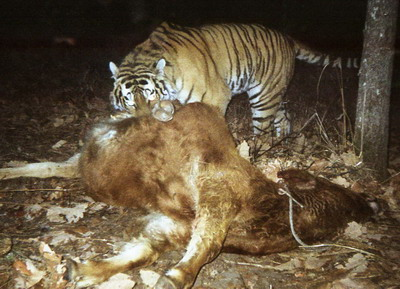 就此事,記者咨詢了從事東北虎保護(hù)工作多年的專家李志興。他說,一般情況下,東北虎一次只吃一頭牲畜,并且不會(huì)留在一個(gè)并不安全的地方這么久,這有點(diǎn)不符合東北虎的習(xí)性,但也有一種解釋就是東北虎咬死羊后,別的羊的騷動(dòng)影響了它進(jìn)食的興致,所以它一怒之下就把騷擾它的羊都咬死、嚇蒙,以換來就餐環(huán)境的安靜。
