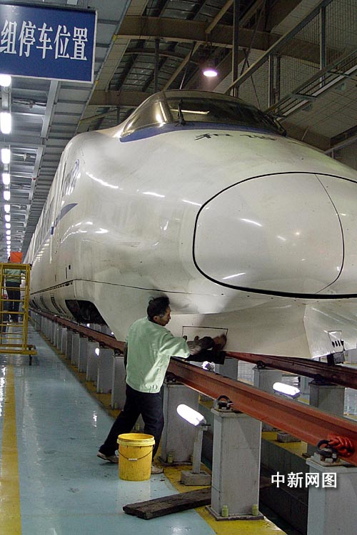 記者看到,在“CRH2—014A”動(dòng)車前,十六名保潔工正對(duì)車體進(jìn)行“洗澡”清潔,機(jī)務(wù)段的師傅對(duì)車輪和制動(dòng)裝置進(jìn)行“體檢”檢修,客運(yùn)段的姑娘們也開始對(duì)車廂進(jìn)行“美容”。