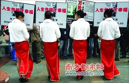 一名男子花800元,請(qǐng)四名靚女舉著“萬(wàn)元紅包征‘無(wú)性!蓛骸钡呐谱,在華強(qiáng)北征經(jīng)濟(jì)條件差且無(wú)能力娶老婆的人。如果條件符合,決定花一萬(wàn)元幫助無(wú)力娶妻的男人娶回老婆,并考慮幫助其解決工作問(wèn)題。