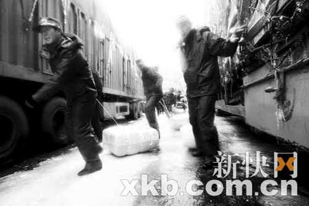 由廣東省交通廳從韶關(guān)、廣州等地調(diào)集的十余臺推土機(jī)和平地機(jī),昨天全部抵達(dá)廣東京珠北有關(guān)路段,展開破冰作業(yè)。在推土機(jī)的重壓下,寒冰被碾碎,灑鹽車緊隨其后往路面上撒鹽,逐步清出一段段不再打滑難行的路來……