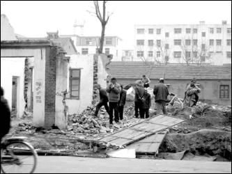在縣城人民路和前進路旁邊的兩個院落內,拆遷正在進行中,一排排房子已經(jīng)夷為平地。但也有23處房屋因為主人沒有簽字,還在廢墟中寂寞地堅挺著。