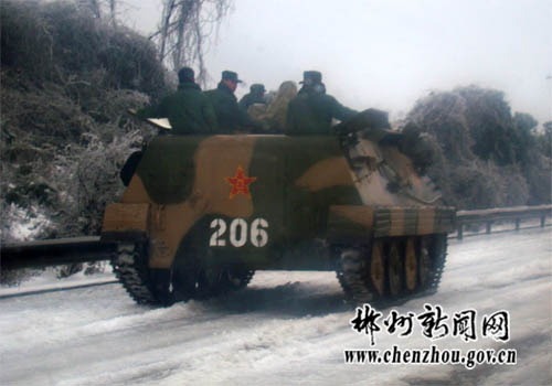 1月28日,剛剛從長沙開完兩會(huì)返郴的市委副書記、市長戴道晉馬不停蹄地趕到京珠高速,看望受困人員,并現(xiàn)場指揮交通疏導(dǎo)和救援行動(dòng)。在京珠高速良田服務(wù)區(qū),戴道晉召開現(xiàn)場辦公會(huì),他要求負(fù)責(zé)交通疏導(dǎo)的人員一定要堅(jiān)守職責(zé),要在最短的時(shí)間內(nèi)確保被困在高速路上的人員及時(shí)疏散。同時(shí),湖南省郴州軍分區(qū)動(dòng)用裝甲車碾冰。