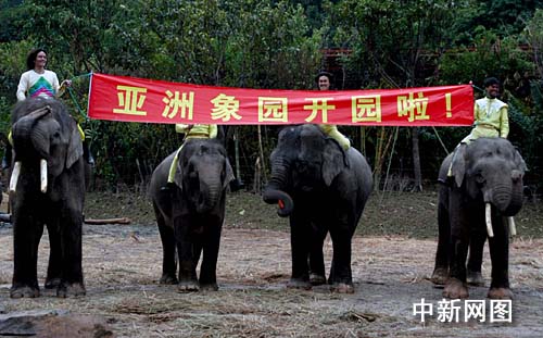 中新網(wǎng)廣州1月31日電(記者 陳國華)31日,廣州香江野生動物世界大象園開園。據(jù)了解,2007年尾至2008年初,短短的一個(gè)季度,該動物園喜獲5只亞洲小象,為了讓廣大游客能同時(shí)看到5只小象及象媽媽共同迎新年,香江為小象建了一個(gè)新家。