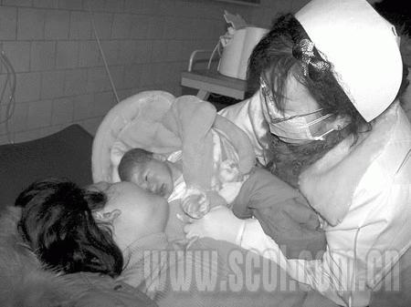 婦產(chǎn)科內(nèi),走廊上擺滿了蜂窩煤灶,上面烘烤的全是嬰兒的尿布。待產(chǎn)室門外,一個花甲老婦和一名中年男子,正焦慮不安地徘徊,不時通過門縫往里看。原來,花甲老婦名叫朱惠富,是產(chǎn)婦張大先的母親。中年男子胡成,是張的丈夫!靶液冕t(yī)院有臺大功率的發(fā)電機(jī)喲,要不然我媳婦和娃娃可慘了。”胡成說,“我媳婦進(jìn)去都1個小時了,還沒消息,急死人了。”“你想要個兒子還是女兒?”“兒女都一樣,只求母子平安。我把名字都給他們?nèi)『昧,如果生的是兒子,就叫胡斌。女兒,就叫胡蝶。?/p>