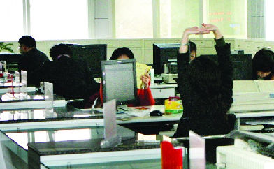在辦事大廳西北角一間“辦公室”里,記者看到里面坐著不少人。緊接著,一個(gè)聲音傳來,“這是上班第一天,不要上網(wǎng)打游戲讓記者曝光!币幻捌筋^”男子說。