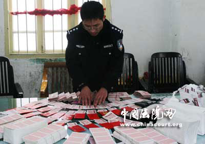 2月3日10時,平頭再次進(jìn)入瑤臺村××號。15分鐘后,偵查員小王肩扛一桶純凈水敲開了門。開門的是那少年,看上去只有14歲左右。小王一眼瞧見客廳的茶幾上堆滿了車票和紅包,地板上擺放有打印機(jī)、裁紙刀……小王大聲咳嗽了一聲,控制住了少年,守候在外門邊的偵查員聞聲一擁而入,控制了所有的出口。在該房子的兩個臥室內(nèi),分別抓獲了正在睡覺的平頭和女子。偵查員當(dāng)場從室內(nèi)搜出電腦4臺、打印機(jī)2臺,裁紙刀一臺,假票5萬余張,用于制作假票用的車票模版票集4本。經(jīng)審查,平頭為封某、女子為谷某、少年為王某。