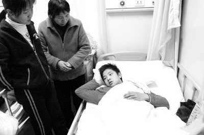 記者在泉州市第一醫(yī)院外科病房看到了年僅15歲的呂榮太,一臉稚氣未脫的他直稱(chēng)頭暈,并斷斷續(xù)續(xù)地講述了事件的經(jīng)過(guò)。