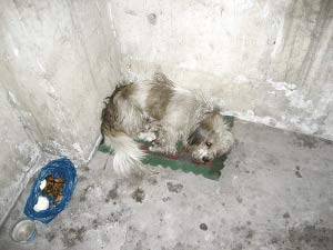 約15分鐘后,高先生辦完事情回來再次途經(jīng)此地,發(fā)現(xiàn)這兩只狗已經(jīng)在路邊,便把車停了下來,走到跟前,發(fā)現(xiàn)那只被撞的小狗已停止了呼吸,而個頭稍大一點的狗仍舊陪在死去小狗的身邊。據(jù)旁邊一位環(huán)衛(wèi)工人說,是這只小狗用嘴一點一點地把它的同伴拖到路邊的,“唉,一只狗都能如此仁義,看著實在讓人心疼!备呦壬屯驴吹叫」贩浅?蓱z,買了幾根火腿腸喂它,沒想到它幾口就吞了下去。隨后,環(huán)衛(wèi)工人把死去的小狗放到垃圾箱旁,那只小狗則一直跟在環(huán)衛(wèi)工人的后面。高先生和同事商量了一下,都表示不能讓這只如此仁義的小狗再繼續(xù)流浪了,便決定把它帶回單位喂養(yǎng)。(記者 彭丹)