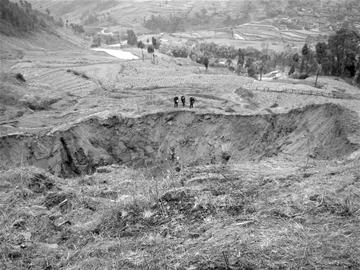 近日,達(dá)州達(dá)縣大風(fēng)鄉(xiāng)白果村一帶陸續(xù)出現(xiàn)土地沉陷,形成不少“天坑”(上圖),最大的直徑超過(guò)10米。目前“天坑”形成原因不明,國(guó)土部門正在進(jìn)一步調(diào)查。