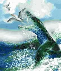 科學(xué)家稱,上龍?zhí)幱谫_紀(jì)時期海洋食肉動物頂層,主要以魚龍為食,也大量捕食烏賊、魚類和其他水生食肉動物。