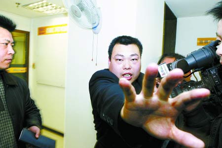 過一會兒,一穿西服、留平頭的中年男子進來,揮著手要記者出去。記者拿出證件,男子一把推開,說自己不識字,用手指著門,要記者出去。