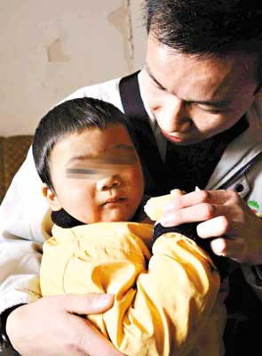 放好摩托車后,劉大毛便四處張望。當(dāng)他看到注視著他的記者一行時,馬上拖起男孩子的手,笑嘻嘻地迎了上前。沒等仔仔介紹完隨行兩人的關(guān)系,女記者便已經(jīng)彎下身去逗小男孩?墒钱(dāng)她準(zhǔn)備抱他時,孩子馬上大哭起來,轉(zhuǎn)過身去,雙手緊緊地抱著劉大毛的右腿不放。在劉大毛的幫忙下,女記者才勉強(qiáng)抱起了男孩,但他依然哭個不停。