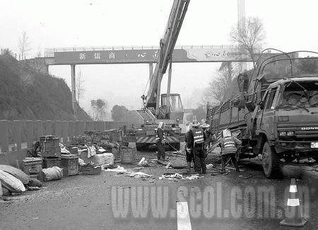 事故現(xiàn)場,一名中年男子臉色鐵青,一言不發(fā)地盯著滿天飛舞的蜜蜂發(fā)愣。他就是大貨車司機(jī)劉強(qiáng)。“3天前,云南養(yǎng)蜂專業(yè)戶厲煥平一行4人,租用我的車幫他們把蜜蜂從昆明運(yùn)往德陽放養(yǎng)。”昨日上午7時(shí),當(dāng)他開車行至成渝高速資中段時(shí),突然感覺方向盤不穩(wěn),大貨車發(fā)生劇烈抖動(dòng)。突然聽到坐在駕駛室的厲老板說,后面有個(gè)車輪快跑脫了。厲老板話還沒說完,貨車一陣劇烈的抖動(dòng),來了個(gè)原地180度調(diào)頭,“轟”一聲側(cè)翻于公路上。等他們下車一看,整個(gè)后右輪竟飛到了幾十米開外,大家當(dāng)場嚇懵了。車上裝載的蜂箱撒落在地上,霎時(shí)間,蜂箱內(nèi)成群結(jié)隊(duì)的蜜蜂鋪天蓋地地飛了出來。劫后余生的蜜蜂老板厲煥平,望著滿天亂飛、遍地蜂尸的場面,心痛得不得了:“這批蜜蜂沒買保險(xiǎn),哪個(gè)賠我的損失喲!”(作者: 楊元祿 高冰潔)
