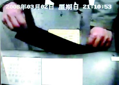 當(dāng)晚8時45分,中國銀行孝感分行保衛(wèi)部的值班人員,像往常一樣,在電視監(jiān)控中心觀察監(jiān)控錄像,突然發(fā)現(xiàn)一名穿著淺色夾克的年輕男子,走近ATM機,他先掏出一張事先準(zhǔn)備好的紙片貼到ATM機上,隨后從衣服里抽出一張長方形的黑色塑料片,插入吐鈔口。