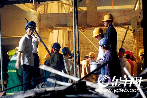 事發(fā)后,省委常委、市委書記朱小丹、市長張廣寧迅速作出批示,要求全力搶救被困人員,查明事故原因。市政府副秘書長潘安、市應(yīng)急辦主任鄧慶彪及市公安局、市公安消防局、市國土房管局、市建委、市衛(wèi)生局、市安監(jiān)局、白云區(qū)委、區(qū)政府主要領(lǐng)導(dǎo)和相關(guān)部門負(fù)責(zé)人第一時(shí)間趕到現(xiàn)場,組織開展搶險(xiǎn)救援工作。