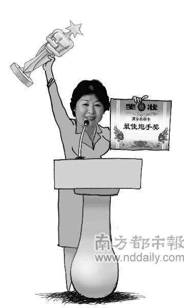 頒獎詞:兩會期間,葛委員接連出手,劍指“周老虎”,反彈“90分鐵道部”,逼問賣票制度不合理,不愧“大炮”本色。然而,一個“中華文化標(biāo)志城”,卻讓葛委員從炮手頓成“炮灰”——坊間盛傳這個預(yù)計投資300億元的項目,其戰(zhàn)略規(guī)劃設(shè)計首席專家竟是葛劍雄。盡管葛委員一再澄清解釋,但政協(xié)委員聯(lián)名上書,網(wǎng)友炮轟不斷。