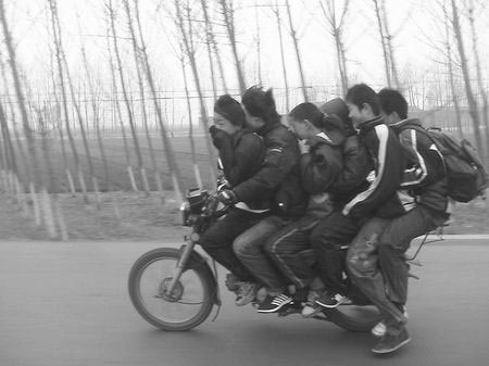 河南“史上最牛”摩的 車上坐六人一路狂奔(圖)