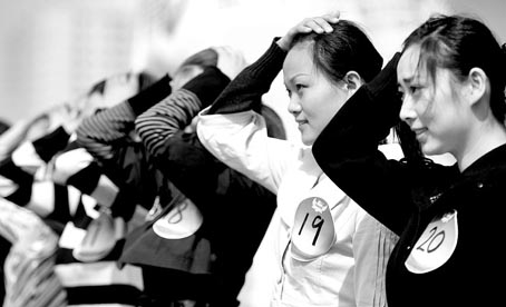 這次進(jìn)行的是首輪淘汰,兩天下來,近5000名選手只有574人有資格進(jìn)入下一關(guān)進(jìn)行PK,淘汰率高達(dá)90%!斑@只是開始,接下來的篩選會(huì)更嚴(yán)格!迸硐壬f,選手要想當(dāng)上空姐,還有7關(guān)要闖。