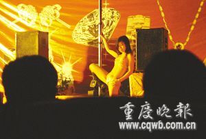昨晚8時40分,演出在電影院1號放映廳開始。開場不到20分鐘,色情節(jié)目上場(如圖),一年輕女子將內衣除下,裸身示眾。記者呆了半個多小時,女演員的脫衣表演就上演了兩次。
