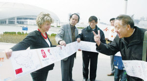 今天,北京奧運(yùn)圣火將在雅典點(diǎn)燃,隨后開始盛大的奧運(yùn)火炬?zhèn)鬟f活動(dòng)。昨天,市民劉長(zhǎng)盛帶著自己親手繪制的火炬?zhèn)鬟f城市圖長(zhǎng)卷,在市奧體中心前與市民分享快樂,為北京奧運(yùn)加油。